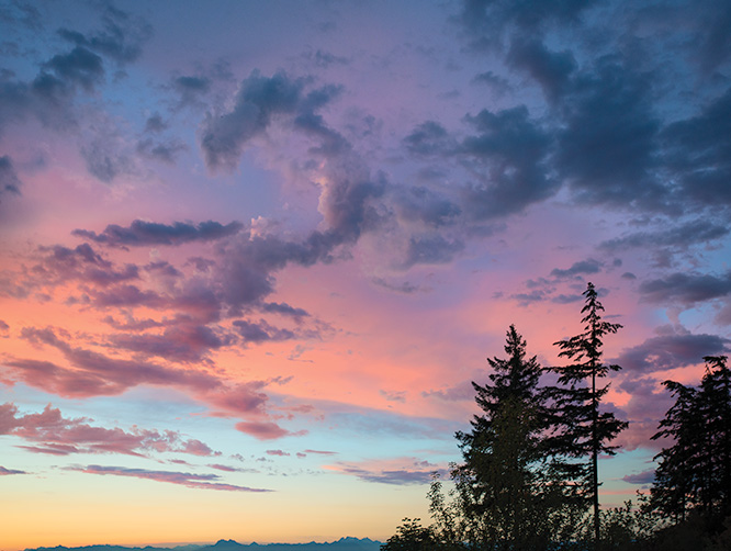 A spring sunset on Toad Mountain, near Bellingham, Washington