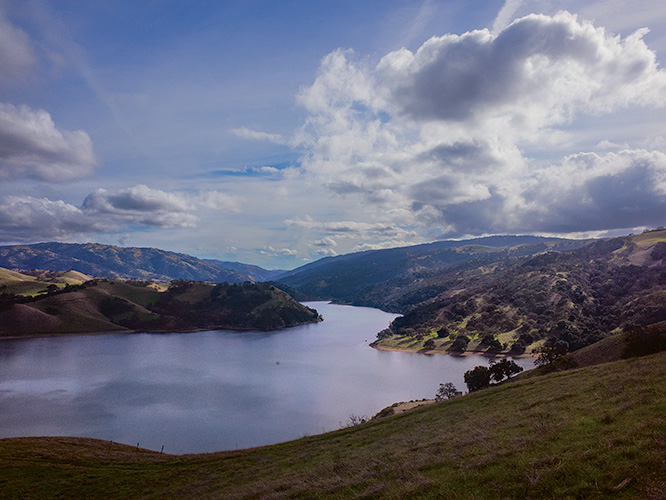 Clouds backlit by the sun, over Lake Del Valle, nesr Livermore, California.