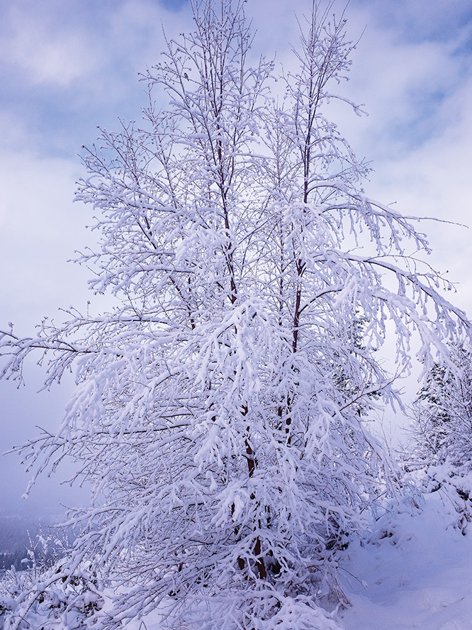 Snow covered alder tree on Toad Mountain during the heavy February snows.