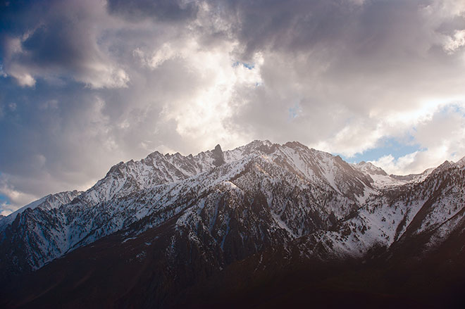 | Morning view of the Sierra crest around Lone Pine Peak after a storm. |
